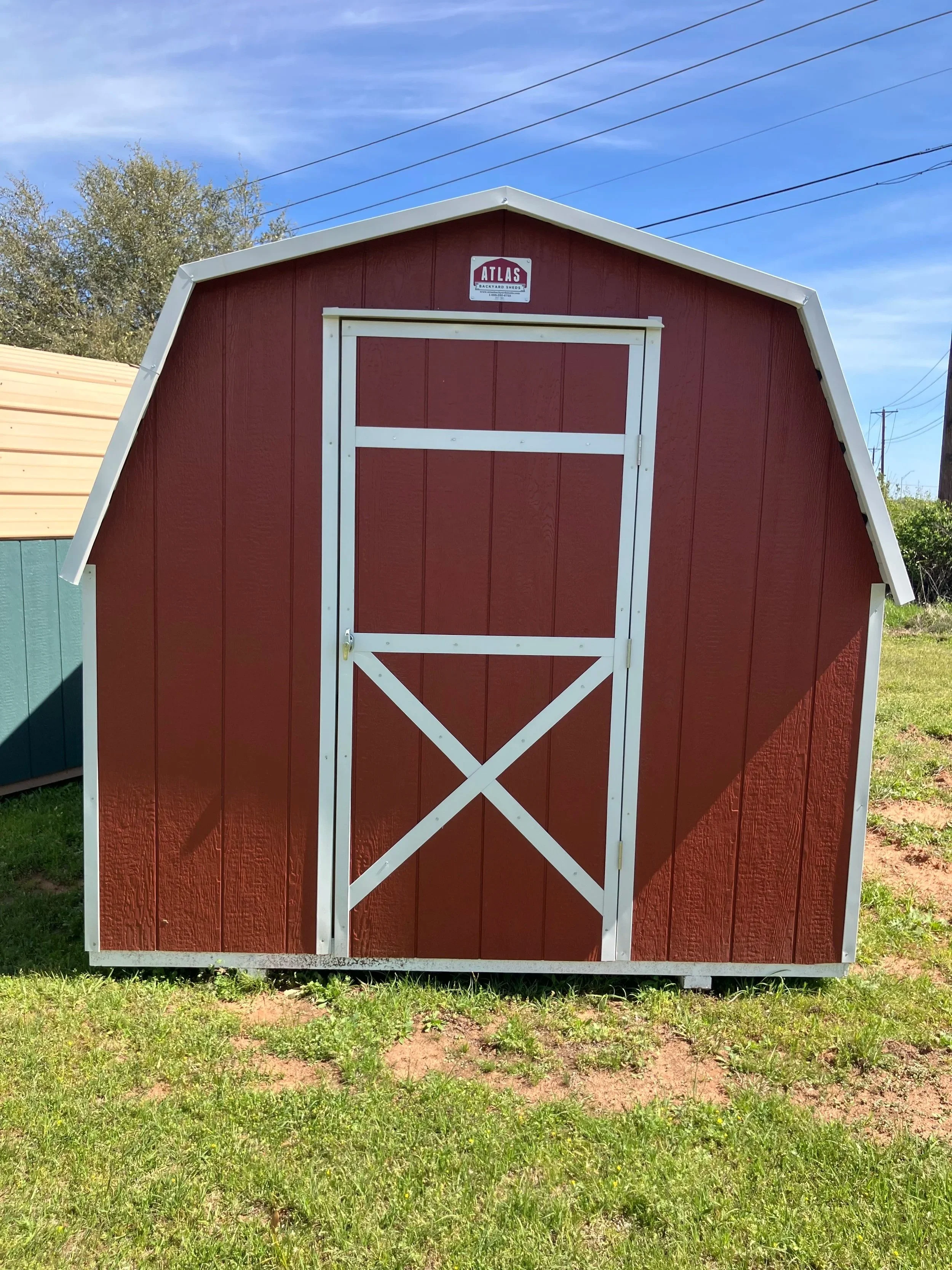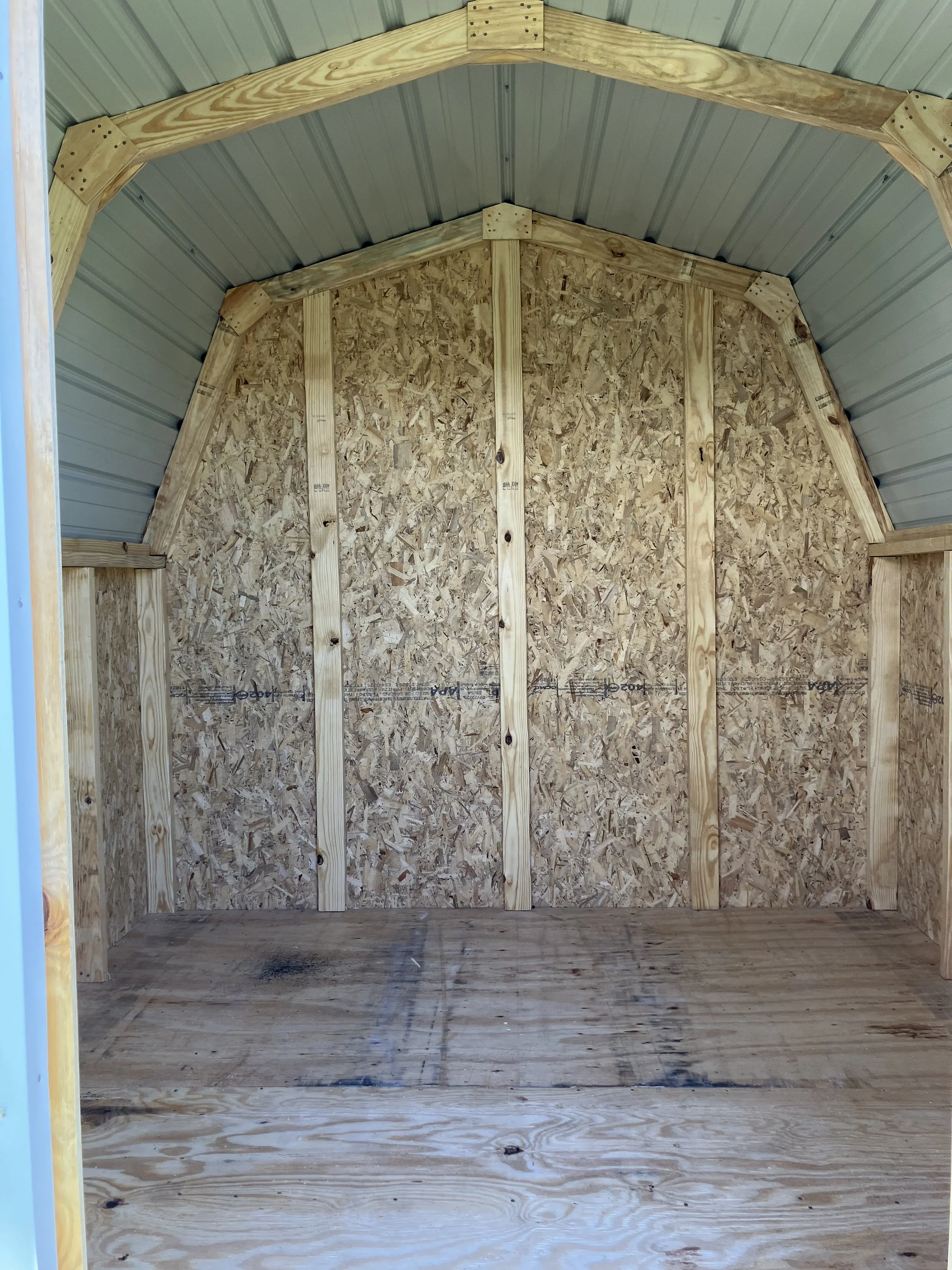 8×10 Bargain Barn 4’ wall height, perfect for HOA requirements. 24” studs on center, 5/8 plywood with treated wood bottom band, 16” on center, and 50 year limited warranty LP Smart Siding. Ask for promotions happening this month.
